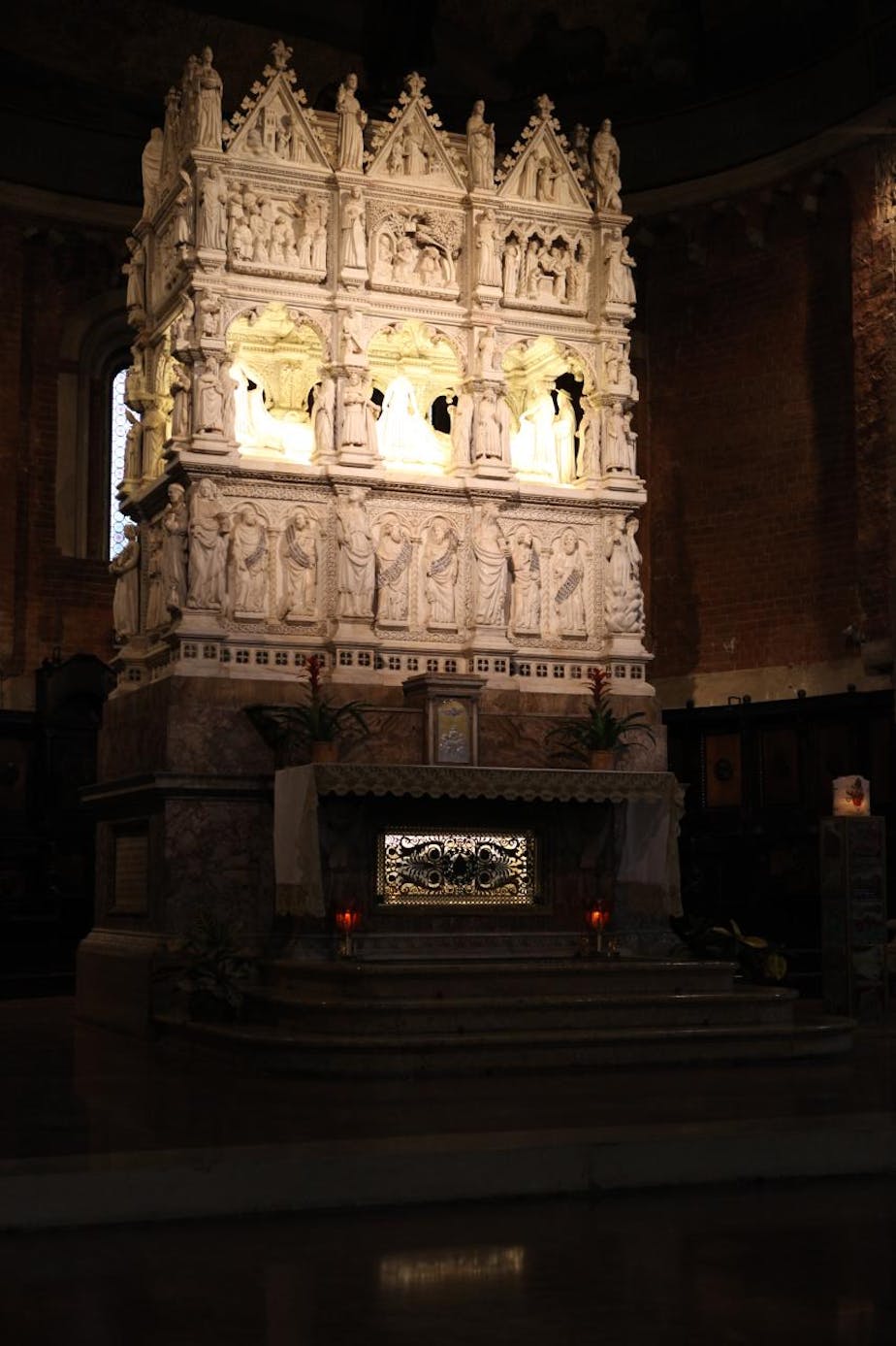 Whether those are really his bones in Pavia is about 50/50 in my estimation - he died in what is now Algeria, but his relics were moved around a lot and supposedly came to Europe during the Crusades. But his tomb is an important work of art in itself and a major shrine, so I had to do it. I walked all the way back across town as fast as I could and was glad I did. It's a really great church, the tomb was impressive, and it was nice to say hello to Augustine if he really is in there.