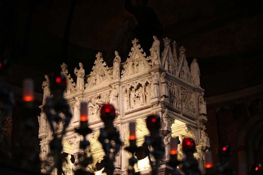 During this visit, most of the lights were out and the altar was roped off again. So I felt very lucky to have gotten there when I did the night before, with special lighting and access for All Saints' Day.