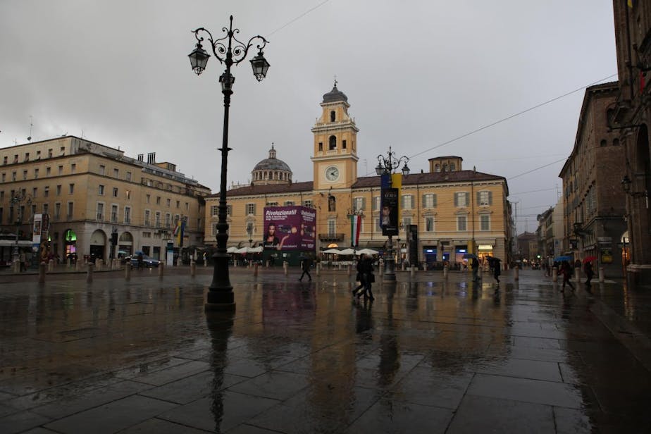 I had lasagna and sparkling water, both of which seemed dirt cheap after Switzerland! To my surprise, given Parma's culinary reputation, the lasagna was nothing special. But probably that's just because it's on the main square - restaurants with prominent locations never have to try as hard.