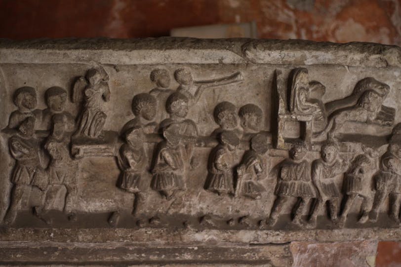 Emperor Constantine built a small shrine over Lawrence's grave in the 300s and a pope added a church to it in the 580s. Another pope built a larger church in front of the old one in the 1200s. There was a banner hanging from the facade celebrating the shrine's 1750th anniversary - now that's pretty old.