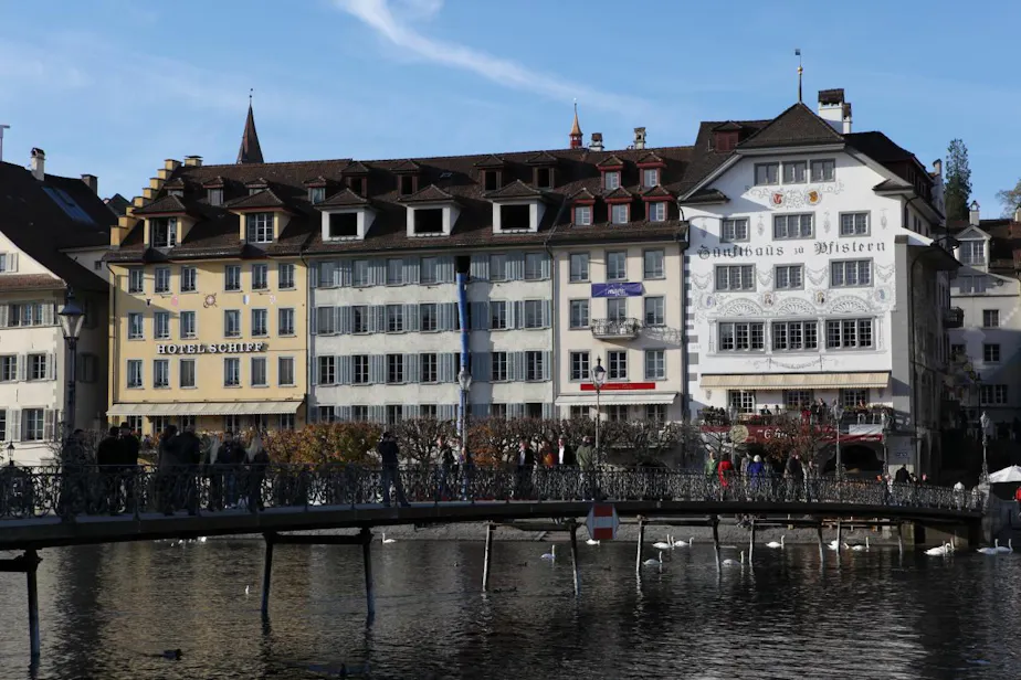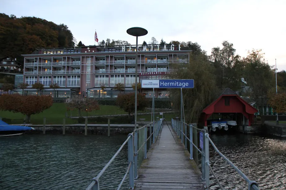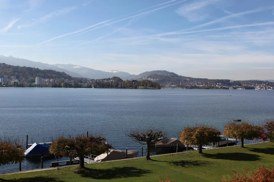 The weather was just glorious when we arrived, too, as you can see. It was not only sunny, but ridiculously warm for Switzerland in late October. We flung open the windows and really soaked it in for a little bit. But we wanted to enjoy the town in the good weather too, so we soon got into the car and drove into Lucerne. In the summer, you can take a boat - the hotel has its own pier! It was sad that it wasn't running anymore, but that's one of the downsides of traveling in the off-season (and there are many upsides).