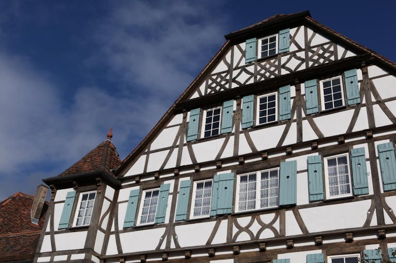 From Heidelberg we drove south to Maulbronn Abbey, a medieval Cistercian monastery that was designated a World Heritage Site because it's so well preserved. It was out of our way, but very cool and worth the trip. Not only the abbey church and cloister are still standing, but also many other buildings within the abbey walls, most of them half-timbered and very pretty. It has a very cozy feeling. And we could park easily and for free right in the heart of it. And we finally got some sunbreaks for our photos, which made us really happy. So it was a great time.