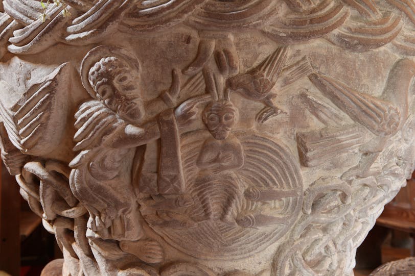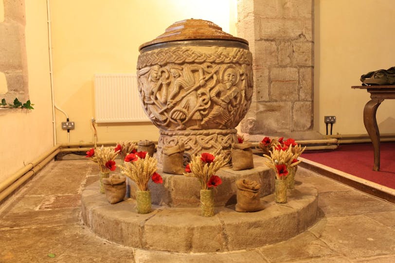 Then it was back out into the countryside to visit another little church and enjoy a lack of people again. This one is called Eardisley and, like Castle Frome, its main claim to fame is its carved baptismal font. All the churches we visited had such beautiful decorations of flowers and harvest-related things like wheat and apples.