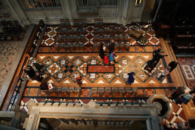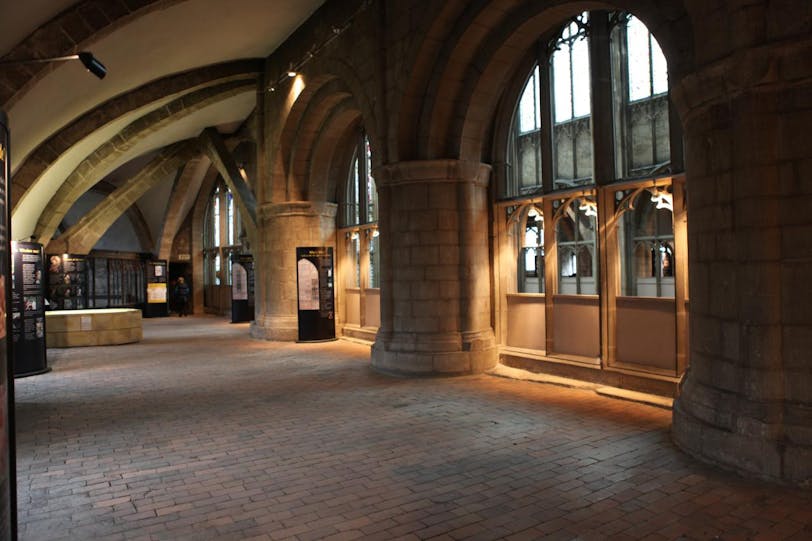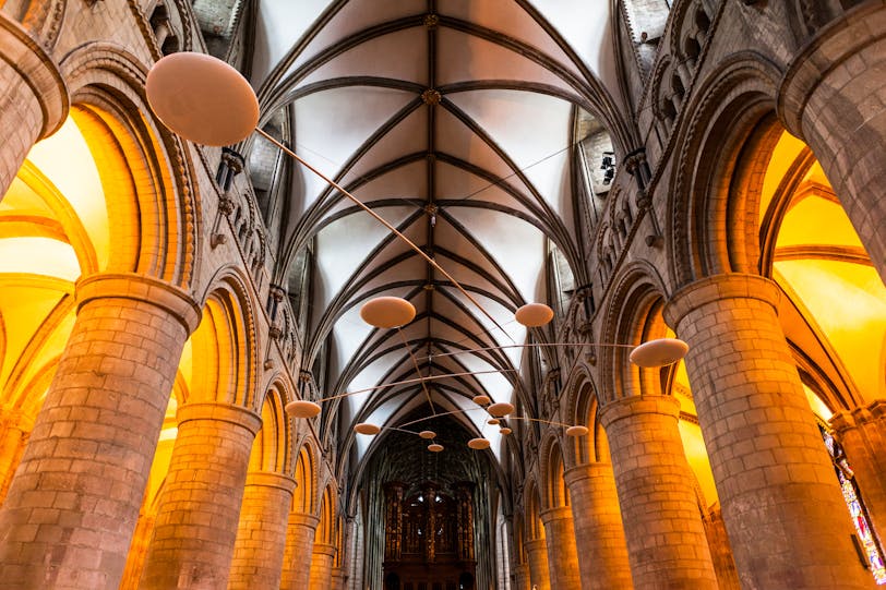 It was very cloudy and there was scaffolding on the exterior, so we didn't get any great outside photos, but we had a wonderful time inside. The cathedral was hosting a temporary sculpture exhibition called "Crucible," which meant large pieces of modern art appearing throughout the cathedral. I was a bit bummed about this for interfering with our photos at first, but most of the art was actually pretty interesting and it made kind of a nice contrast to the medieval building.