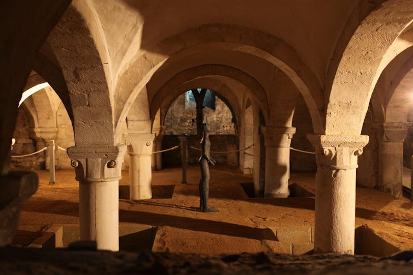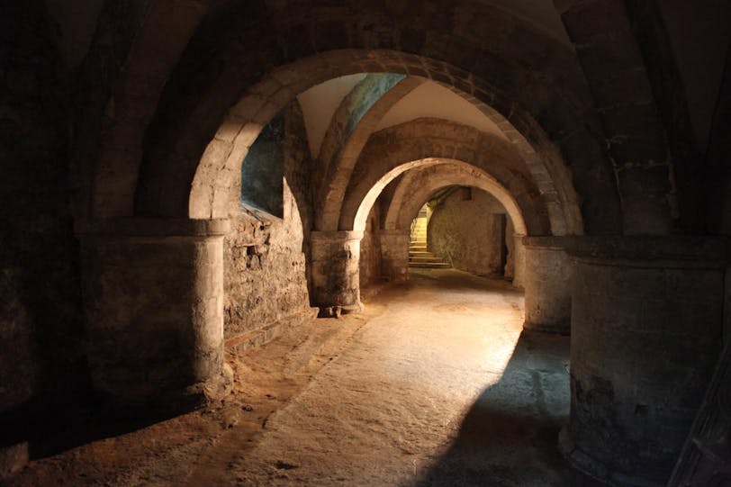The ancient crypt can only be visited on a (free) guided tour, so we joined one at 11am. It was led by an old man with a great personality and was quite enjoyable. In addition to talking about the architecture, he spent a lot of time talking about the history of how the cathedral was used when it was part of a monastery in the Middle Ages. He explained that monasteries were primarily "prayer factories" where monks said prayers for people's souls around the clock to help them get out of purgatory earlier, in exchange for donations to the monastery. The crypt is quite large and we had the freedom to wander around and take pictures during the tour, which took about 20 minutes.