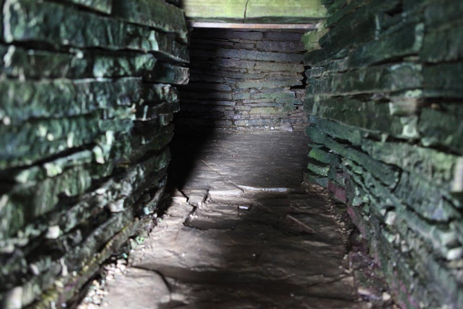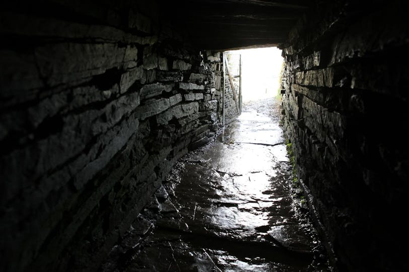 The third chamber cairn (Cuwee) was at the top of a steep hill and its passage was the smallest one yet - I only barely managed to inch along down the passage without getting on my hands and knees, but did end up putting my hands on the muddy stones in the end anyway. Yuck.