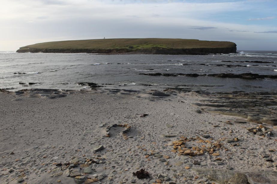 And finally, we went down to the beach and climbed on the rocks at the Bay of Birsay to see a tidal island (currently high tide and not accessible) with some Norse ruins on it. It was just yet another spectacular sight, and a nice conclusion to a wonderful day out.