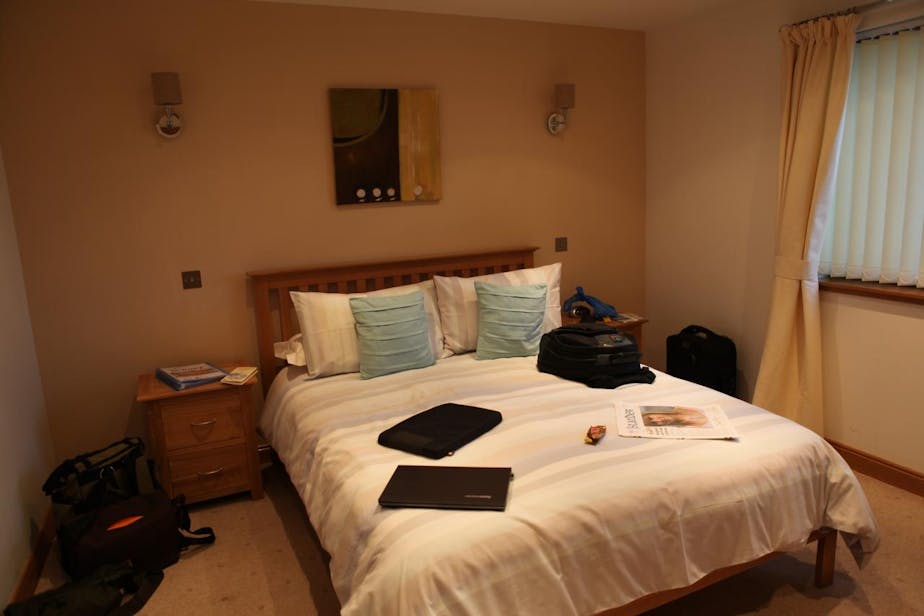 By the time we arrived at our B&B, which is about 30 minutes' drive from the port, it was raining hard sideways. We later heard that the next ferry that evening had to be canceled. But thankfully the B&B is strongly built and cozy and our car has heated seats! After checking in, we drove immediately into town to brave the elements for an exploration of "downtown" and dinner (we didn't even take our cameras as they would have gotten very wet), then dried off and crashed early. There weren't too many other tourists to be seen.