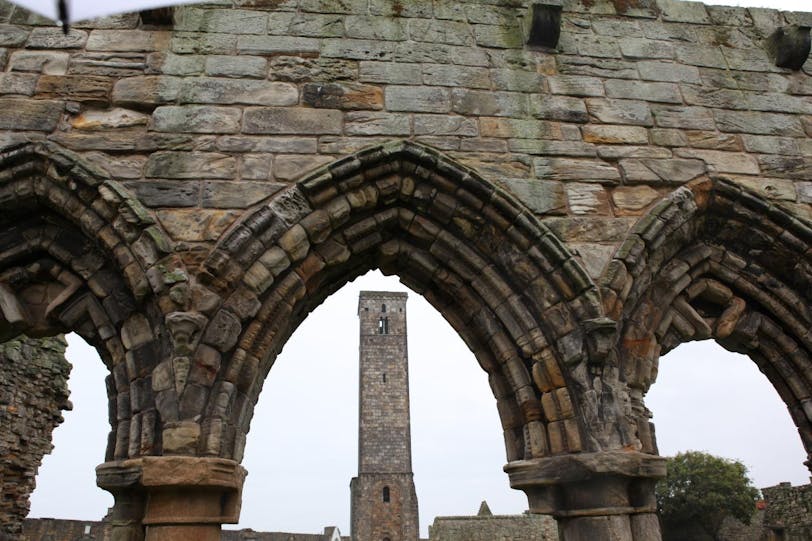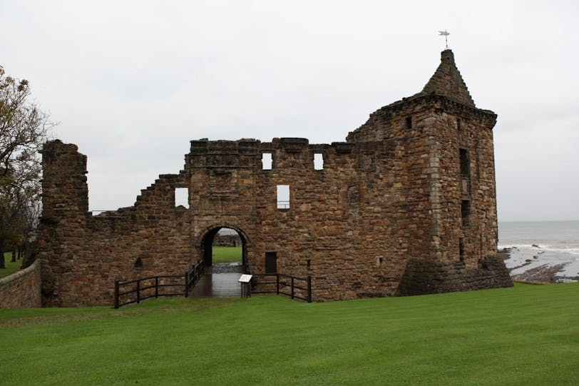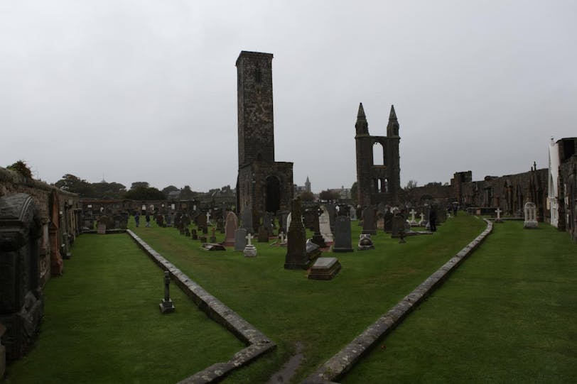 After the course, we walked up to the ruins of St. Andrew's Cathedral and Castle. They are pretty great ruins, overlooking the sea, but it was really hard to take pictures without getting rain on the camera lens, so we only took a few and they aren't that great. Oh, well. Can't win 'em all. There's a bright side to this part, too - during the walk along the coast, we shared a package of cooked salmon slices we'd bought the day before at Marks & Spencer. It was SO GOOD. And it was Scottish salmon, so it seemed fitting to eat it by the ocean.