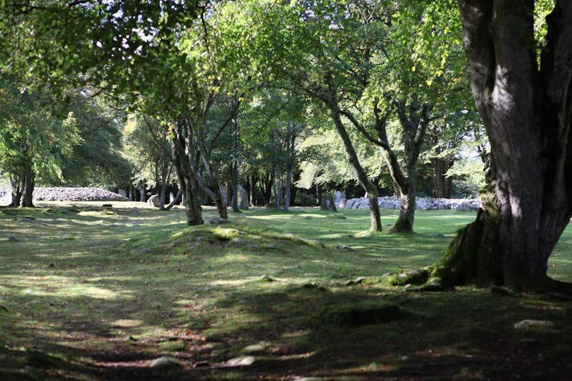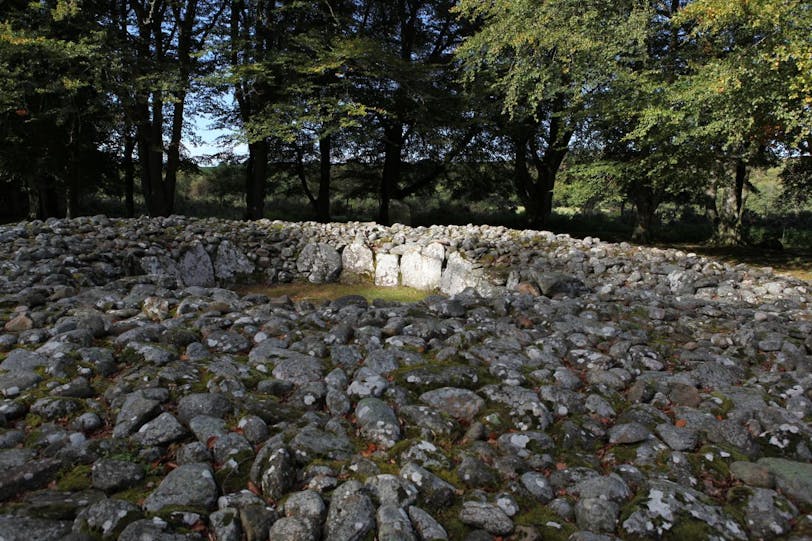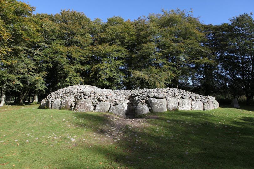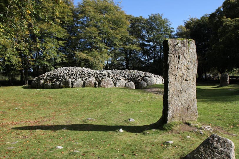 Near Culloden and on my to-see list was Clava Cairns, which turned out to be cooler than we'd expected. The site was free and in a very rural location, shaded by beautiful trees. Very atmospheric. It consists of three tombs dating from around 1000 BCE, each with a stone circle around it. Two of them are passage-tombs with a similar design to the big famous one in Newgrange, Ireland. We loved it.