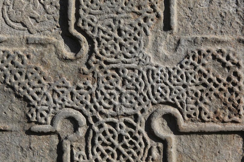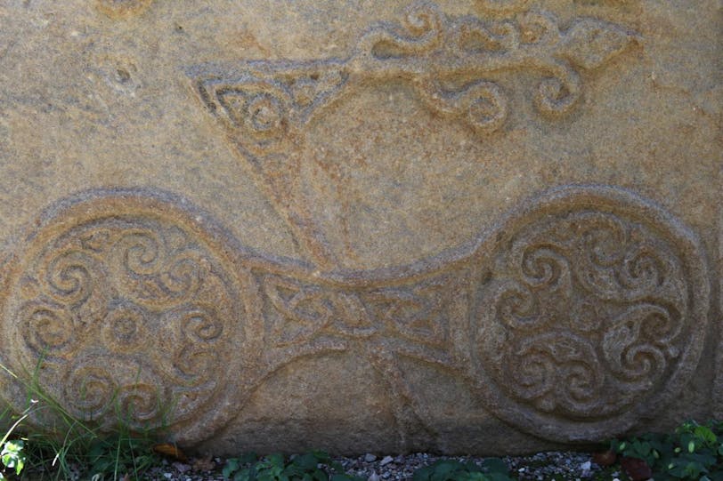 Not far down the road from there, we pulled off to check out a signposted castle. The castle didn't turn out to be worth it (too new, too difficult to visit), but I got a great surprise on the way - a carved Pictish stone! The Picts were the native barbarians in Scotland, similar in some ways to the Celts of Ireland. Ancient carved stones and crosses are some of my favorite things, so I was thrilled to randomly find one on the side of the road. It's called the Rodney Stone and dates from the 800s AD. It has a cross on one side and intriguing Pictish symbols on the other.