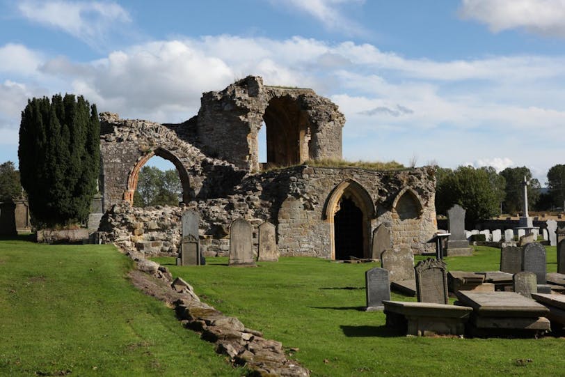 Soon after that, we saw a sign for Kinloss Abbey and saw ruins! David made a quick turn and we made a quick visit of a pretty great site. It turns out it is a Cistercian abbey from the 12th century, and the surrounding burial ground was really interesting as well, with dates on the gravestones spanning hundreds of years. While wandering around, we met some very friendly locals walking their enthusiastic Scottie dogs.