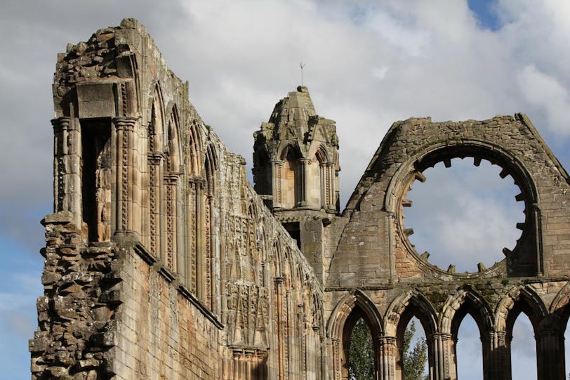 And finally, we got to the main destination on my list, Elgin Cathedral, which dates mostly from the 13th century and is now in ruins. It included a tower for me to climb for some great views! And David decided to do telephoto-only for this one, getting us some great details.