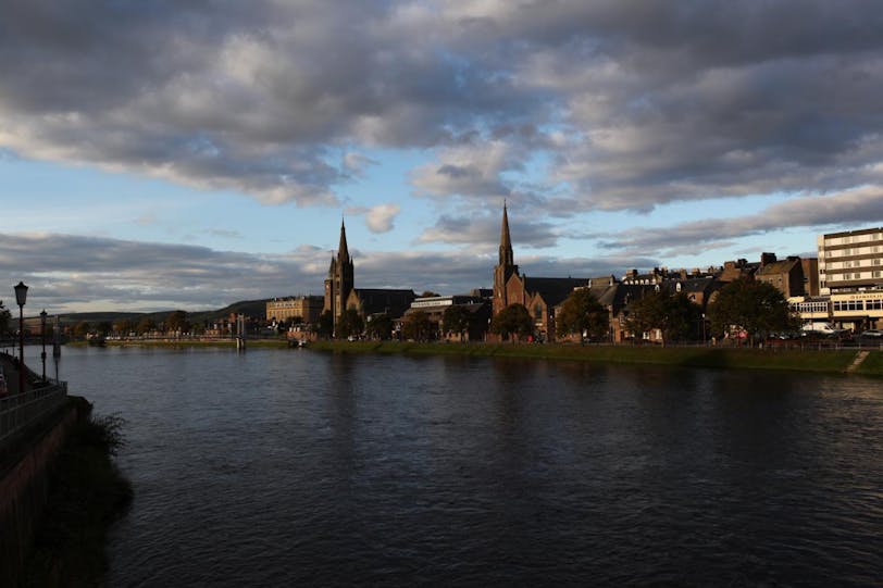Back in Inverness this evening, we walked into town for dinner. The sun was still shining beautifully, making the fairly average town look a lot prettier than it did last night. The views from the bridge over the River Ness were especially nice.
