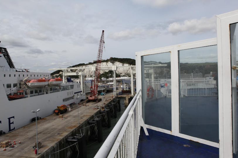 The trip from Brussels to Calais took about 2 hours; we changed trains in Tournai and Lille. It was generally a good trip - the trains weren't too full and there was some pretty scenery. At Calais we had to wait for a shuttle bus to the port, then just got checked in in time to make the next ferry, which departed at 11:40am. We were starving by the time we got on the boat, but there was a nice restaurant on board where we enjoyed pasta bolognese with a view of the English Channel. 1 hour and 40 minutes later, the White Cliffs of Dover came into view and then we were back on English soil.