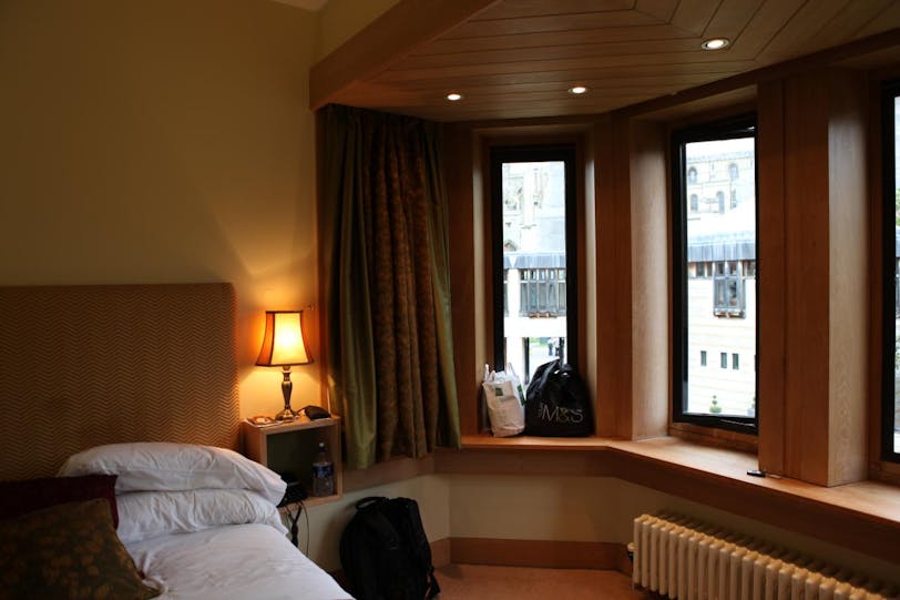 We took lots of pictures, then continued on for just 10 more miles to Canterbury for the night. I had booked us in the Cathedral Lodge, a hotel and conference center owned by the cathedral and located right next to it. Trying to drive to a cathedral in the middle of a medieval town meant that David had to revisit all the less desirable aspects of British driving right away - lots of roundabouts, narrow roads, dodging parked cars, remembering to stay on the left, and a lack of clear signage. Eventually we gave up, parked in a public parking lot, walked to the Lodge to ask for directions, then went back to get the car.
