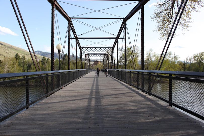 We arrived in Missoula around 5pm and asked about a room at Goldsmith's Inn, a historic B&B recommended by my guidebook. They had a room but needed some time to get it ready, so David went next door for some ice then worked on organizing the truck while I went for a wander along the river. It was a beautiful evening and I really enjoyed my walk, which took me along the university grounds and across a bridge leading into the old downtown.
